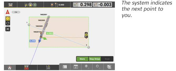 - Move the pole/aim the laser at a point less than 0.5m away from the first point. The system assumes that a stripe shall be determined while measuring point-by-point