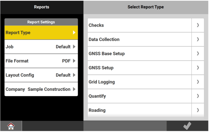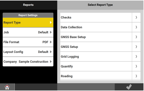 The currently active report settings are displayed. - To start creating a report, tap the desired report type.