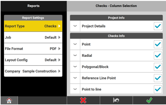Tap Job to select another job containing the data for the report. - To define the desired file format of the report, tap File Format.