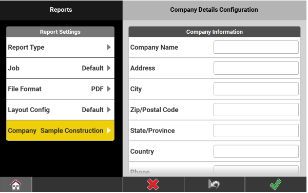 The Company Details Configuration screen is displayed.- To create a company profile, tap