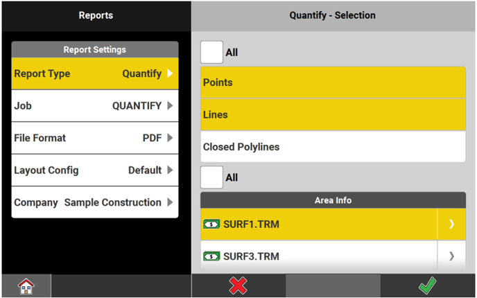 Quantify is a special type of report that allows you to attribute costs to surveyed points, lines, areas and volumes. Based on an imported cost file, the software calculates the job costs according to the quantity of surveyed features and the accordingly defined prices.
