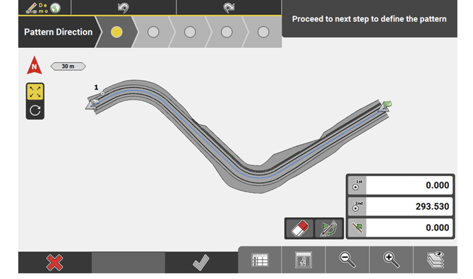 Tap this button to create the pattern as backward direction. ➜This button is only active, if two points have been selected in the previous step. |