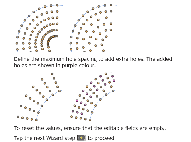 Enter the maximum hole spacing to add extra holes. |
