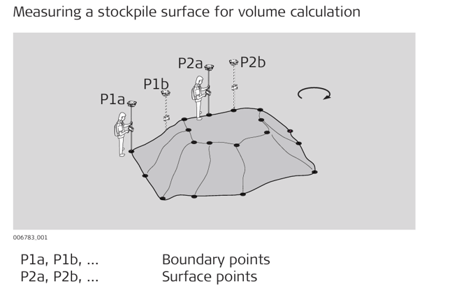 in order to measure further points behind a stockpile, tap: