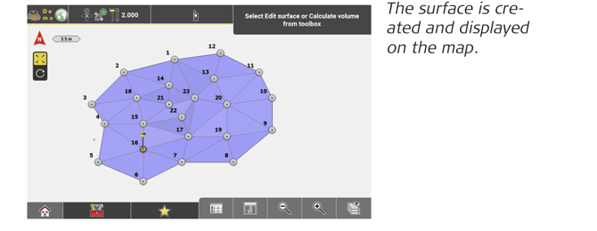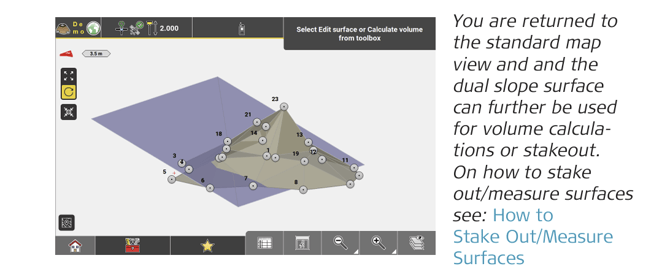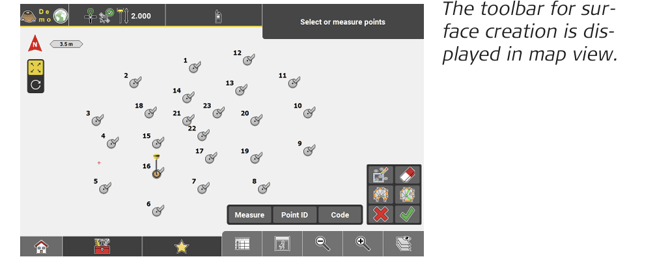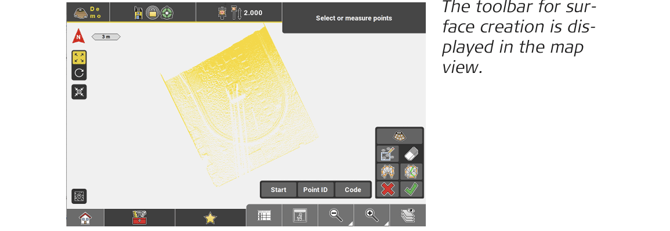 Tap to finish surface creation. - To define the new surface, measure as many points as required or tap existing points in the map to be included in the surface.