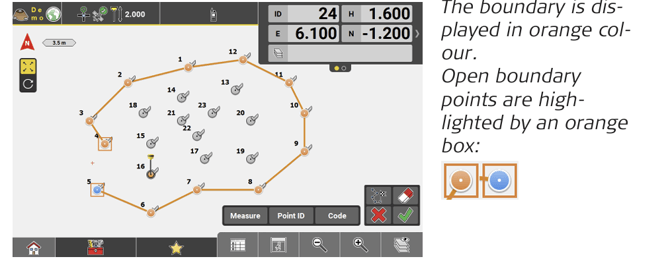 • Measure points or tap existing points on the screen to connect all boundary points.