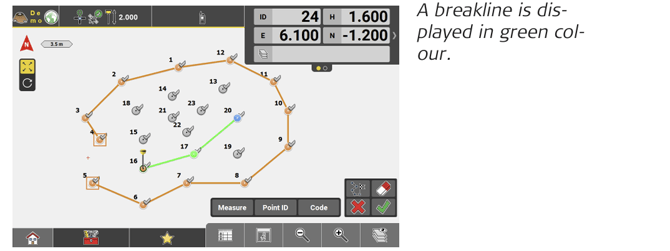 • Measure points or tap relevant points on the screen to connect all breakline points.