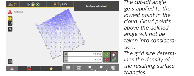 ➜ To take the whole cloud into consideration for surface creation, tap the toggle button
