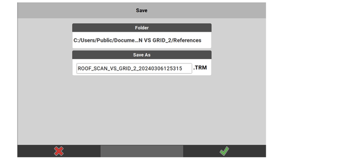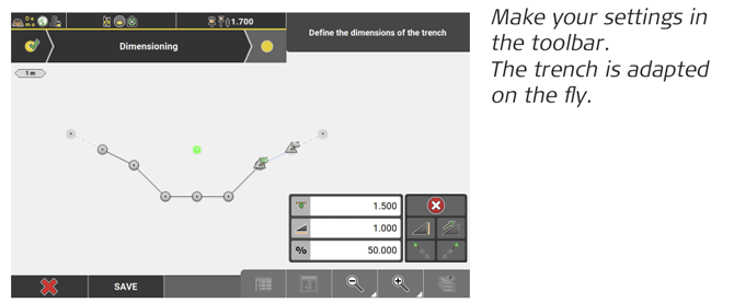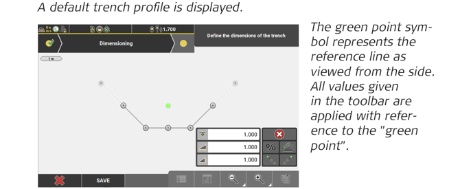 ➜ To store the trench definition to a *.csv file, tap Save. Enter a name for the file and tap