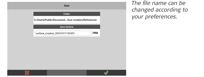 - To save the surface, enter the desired name and tap