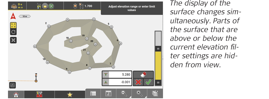 - Use the slider on the right-hand side of the Map screen to apply minimum and maximum elevation filtering to the surface.