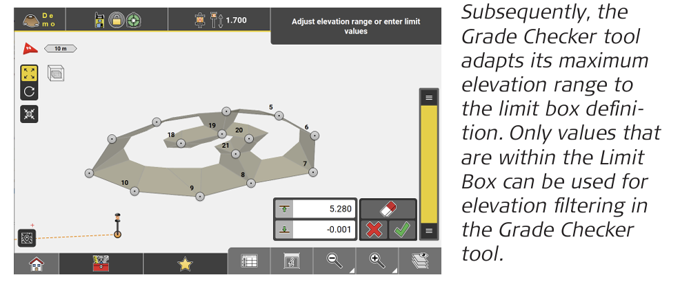 ➜ iCON site Plus: When you have got an iCON site Plus license, you can use the Grade Checker tool in combination with Limit Box functionality. See also: Limit Box