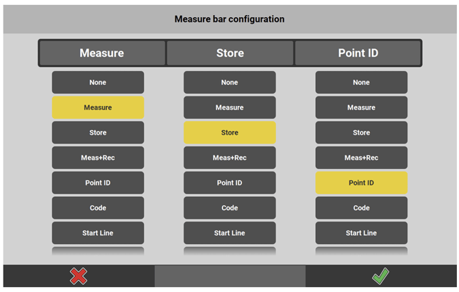 • Map handler displays separate Measure and Store keys. Tap and hold Measure bar to configure accordingly.