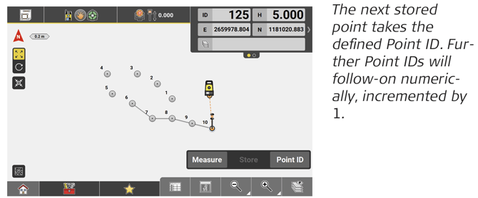 ↪ If not yet configured, tap and hold the Measure bar and select to display Point ID. Tap