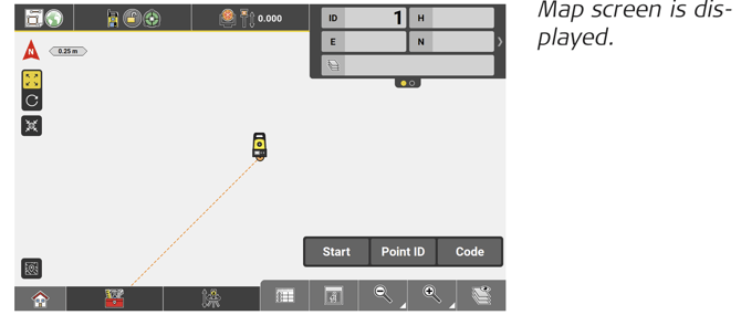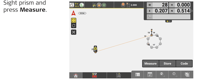 ↪ If Prism Type is set to "reflectorless" or "tape", or if Measure Mode is set to "Single Manual", you must fine aim and trigger the measurement manually.