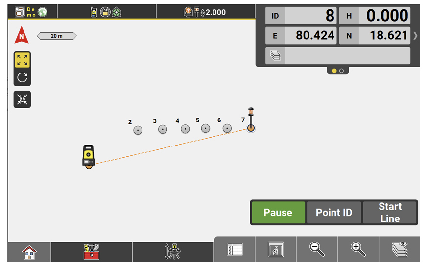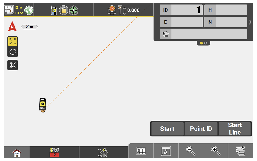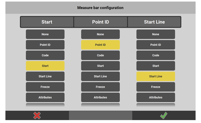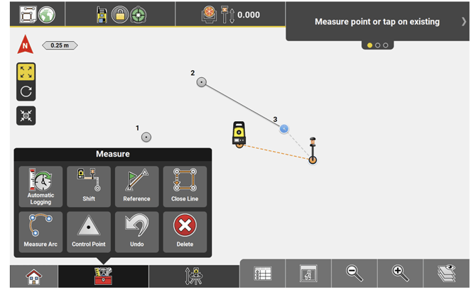 - To create lines between points, tap and hold the Measure bar. Configure to display the Start Line function. Tap