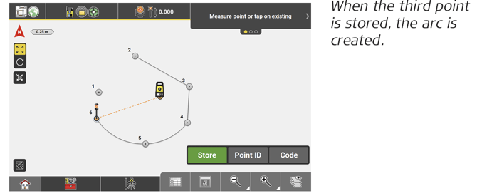 - To create arcs from three points, select Measure Arc from the Tool box.