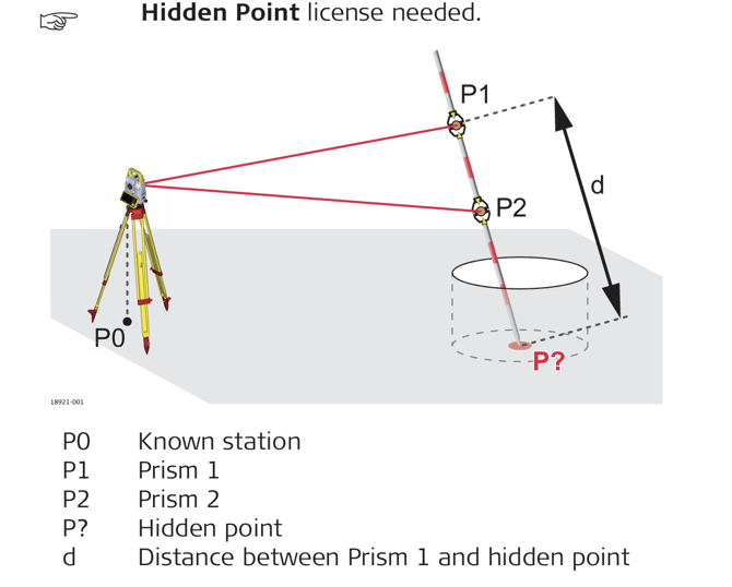 After measuring both prism, the hidden point is calculated. The code "Hidden" is assigned to the point.