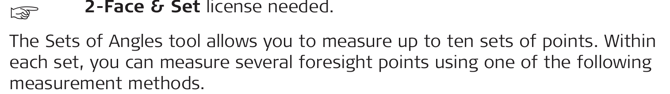 | B1-B2-F1-F2 | Backsight point is measured in face I immediately followed by face II. Other points are measured in face I, face II order. |