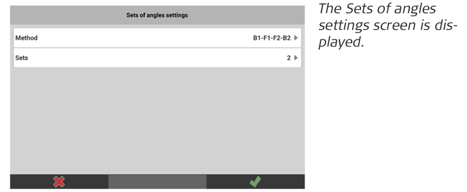• To start the measurement process, tap Define Set. - Working with a manual total station: Turn the instrument to sight the defined points in the desired face and trigger the measurement manually. Follow the instructions on