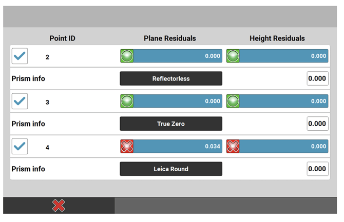 - As soon as the measurement process is finished, the residuals for each measured point are displayed.