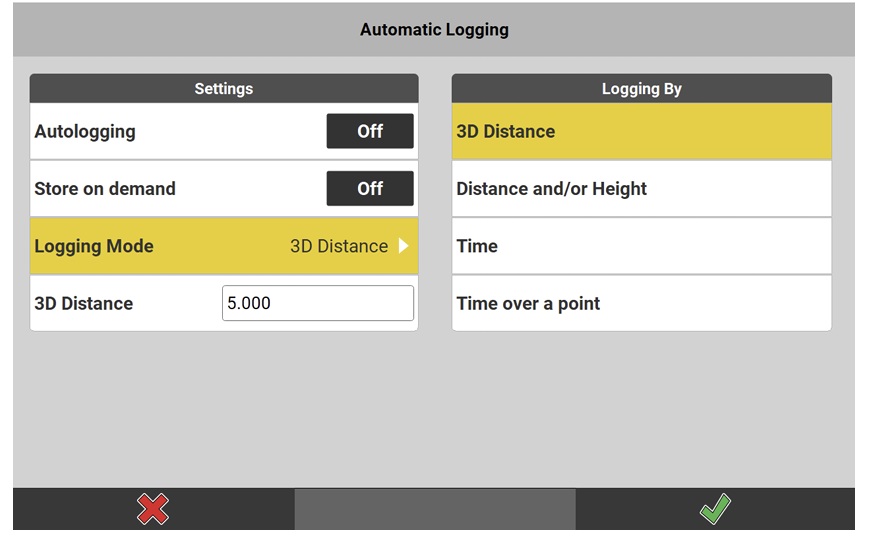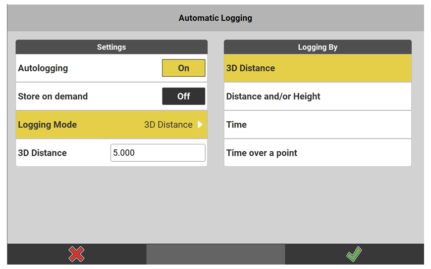 - In Measure/As-Built, select Automatic Logging from the Toolbox.