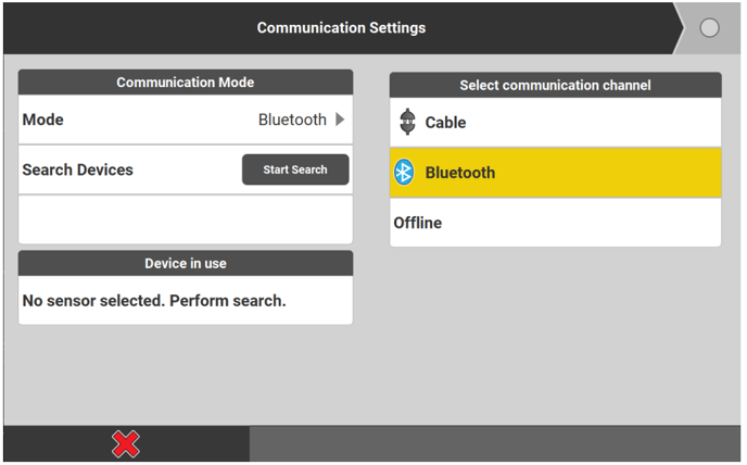 - For Bluetooth, press the Start Search key. Select the relevant instrument profile from Search Results.