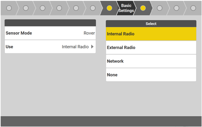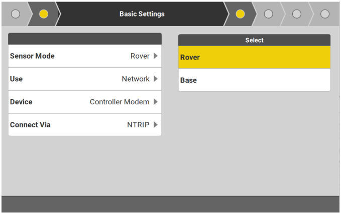 To define the setup type, select 'Rover' or 'Base' for Sensor Mode.