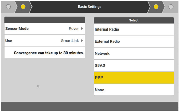 PPP (Precise Post Processing) is a service that increases the position accuracy without the need of having a base. The convergence time after activating PPP can be up to 30 minutes. - RTK Bridging requires a licence of its own and can also be used on iCON iCG70, iCON iCG160 or iCON iCG100 antennas.