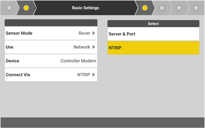 - Define the settings for NTRIP connection. Tap the next Wizard step