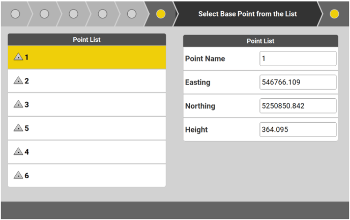 - The status page is displayed. The defined base point is stored in the point list, with the code "Base Point" assigned to it.