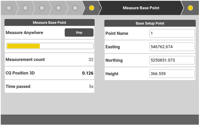 - If the quality of the measurement is sufficient, tap Stop to store the measured base point.