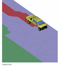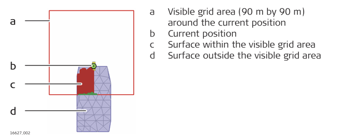 The grid logging function in Cut & Fill generates a real-time coloured grid while moving along the surface. The coloured grid gives an overview of the current surface state.