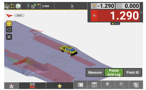 - To start the grid logging process, tap Start Grid Log. Move the vehicle with the mounted antenna/prism along the surface.