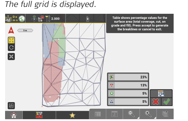 Percentage value of the design surface covered by the Cut/Fill Grid.