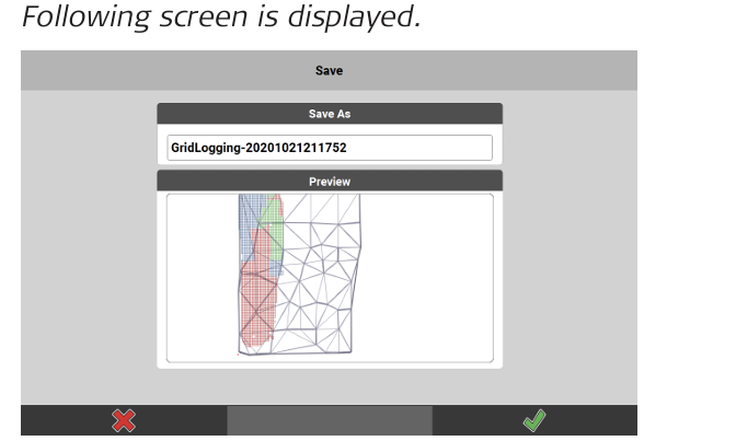 - • To exit the preview and continue with grid logging, tap