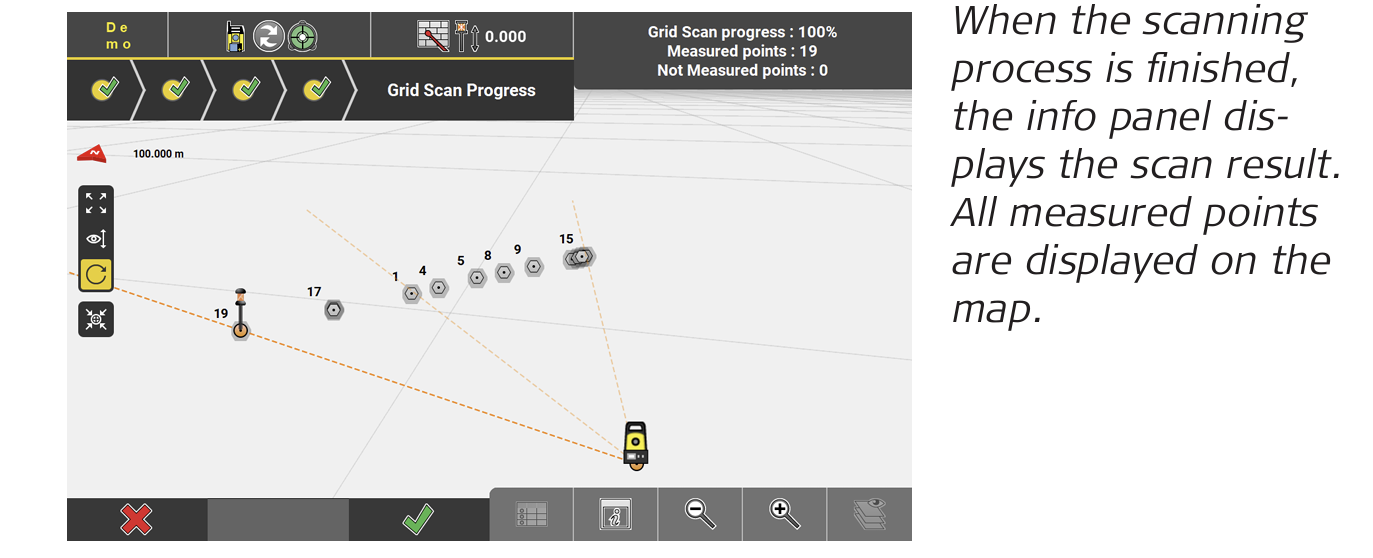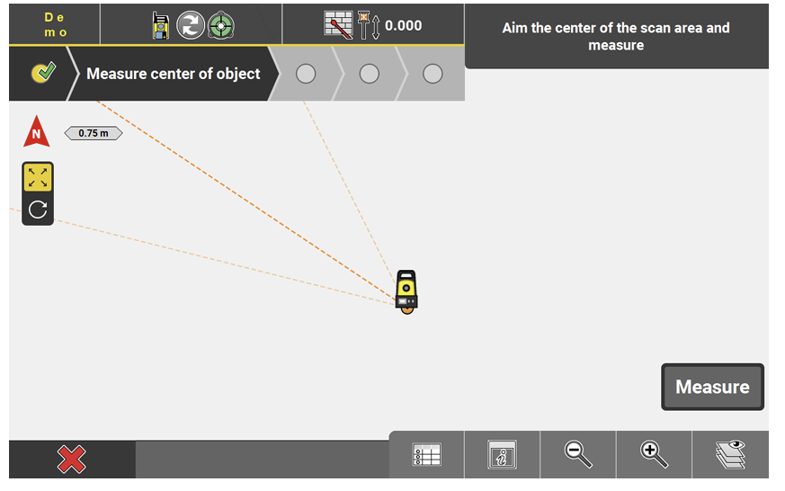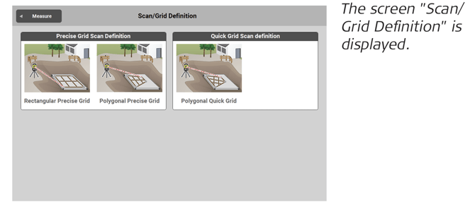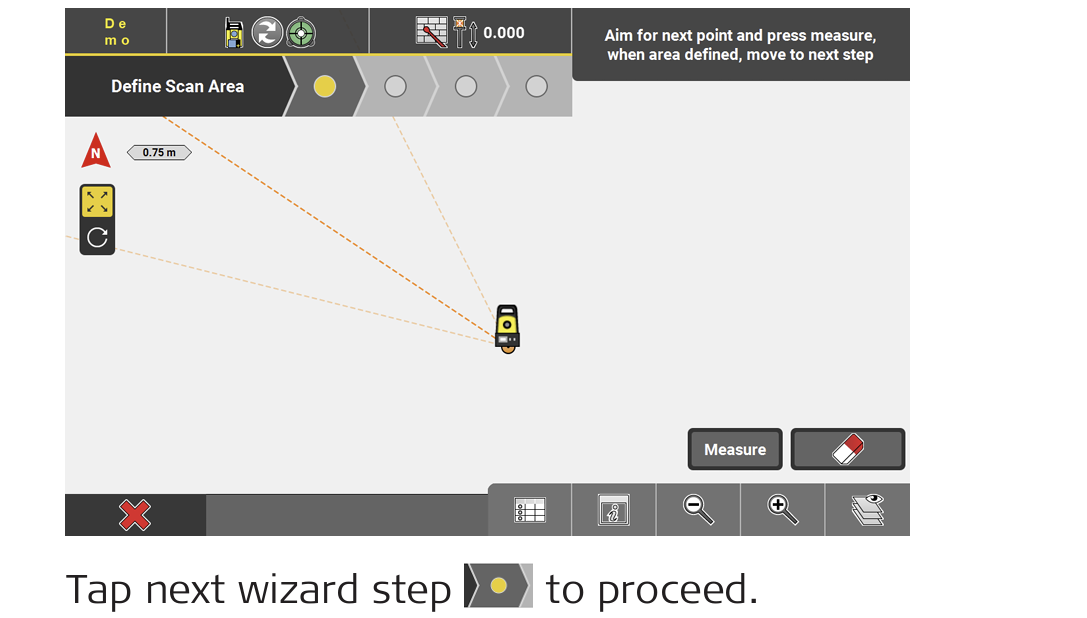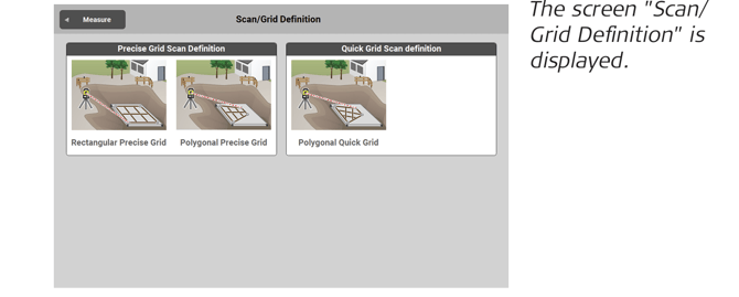 - Follow the instructions on this screen to define the polygonal scan area. Measure at least three points to define a polygonal area. Only the angles are measured and stored.