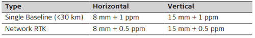 The following accuracies, given as root mean square, are based on measurements processed using LGO and on real-time measurements.