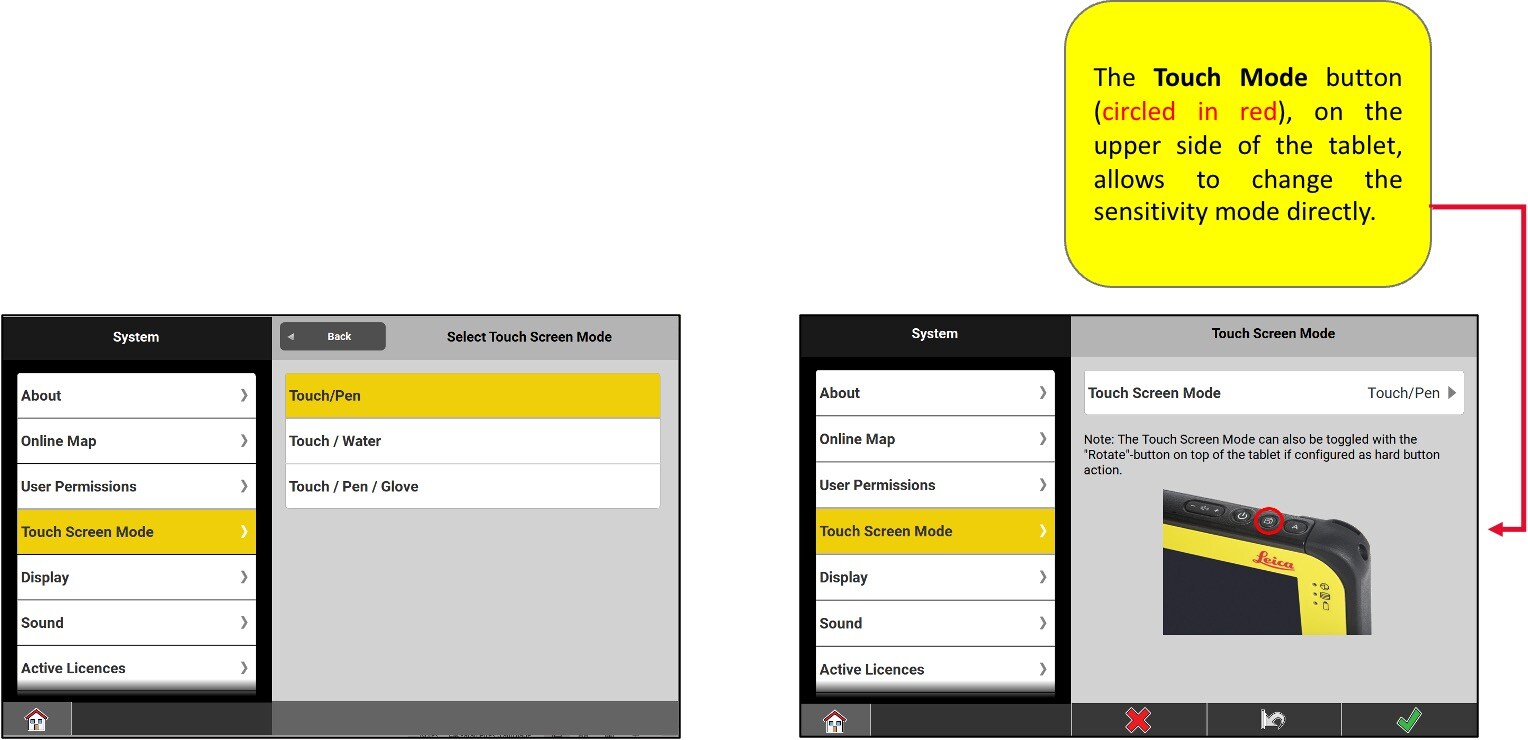 Touch Screen Mode: choice of 3 sensitivity modes: