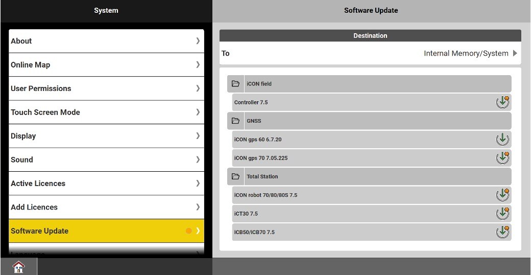 In "Software Update" the latest updates can now be downloaded directly to the tablet, without going through myWorld.