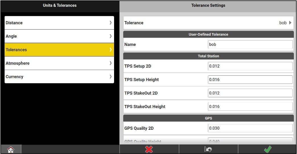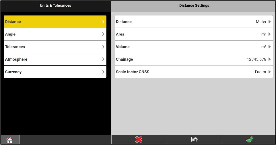 In the sections Distance, Angle and Atmosphere, you will have different choices of working units for distances, derived quantities, angles, slopes, pressure and temperature.
