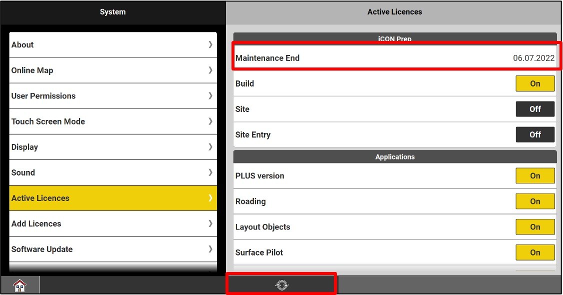 A button allows you to update the licenses already loaded in the tablet. For example, a CCP or an application.