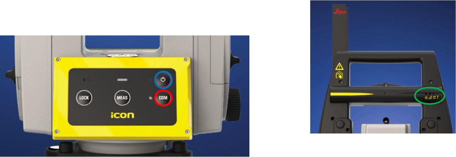 When using a robotic total station, ensure that the device is in the correct communication mode via the radio handle :