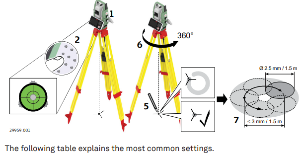 1. Set up the instrument on the tripod approximately 1.5 m above the ground and level up.