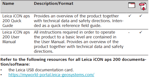 Refer to the following resources for all Leica iCON aps 200 documentation/software:
