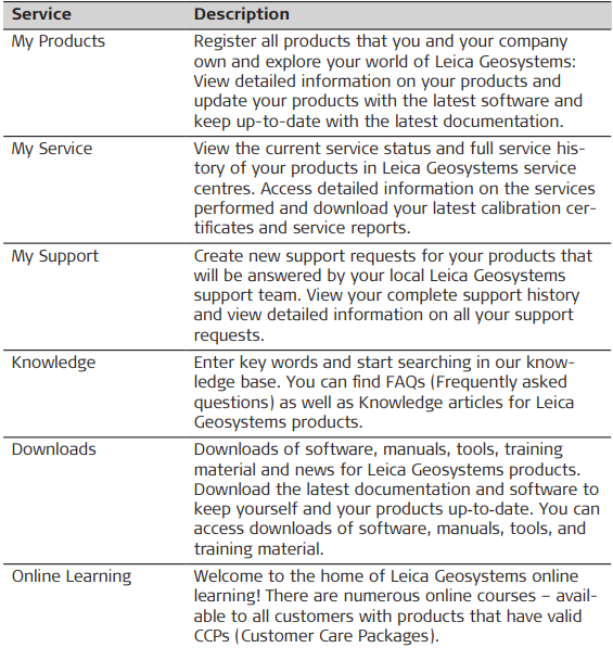 https://myworld-portal.leica-geosystems.com/ offers a wide range of services, information and training material.