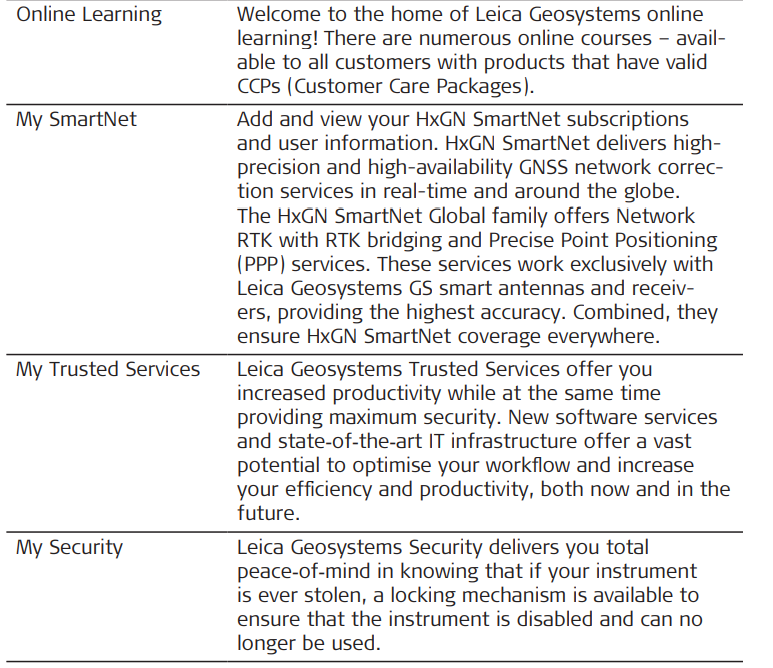 https://myworld-portal.leica-geosystems.com/ offers a wide range of services,