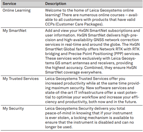 https://myworld-portal.leica-geosystems.com/ offers a wide range of services, information and training material.
