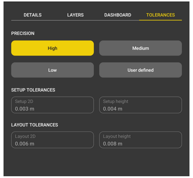 A warning appears if the setup accuracy is lower than the defined tolerances. - Change LAYOUT TOLERANCES