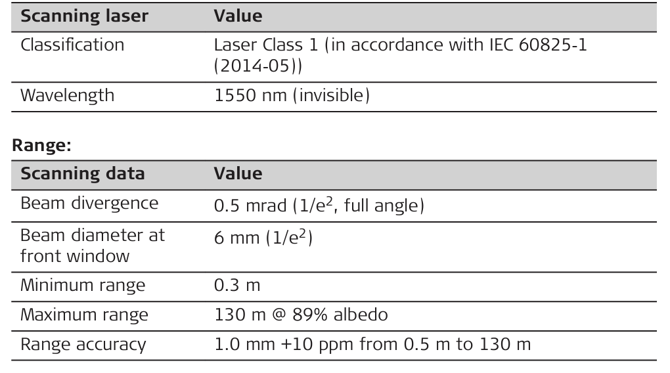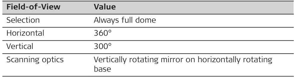 The scanning system is a high speed time-of-flight unit, enhanced by Wave form Digitising (WFD) technology with a maximum scan rate of: